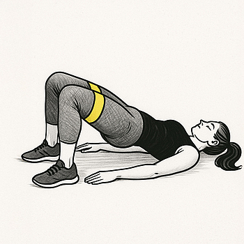 Für eine effektive Gesäßmuskulatur-Übung legen Sie sich auf den Rücken, die Füße sind hüftbreit auseinander aufgestellt und das Fitnessband über den Knien. Heben Sie Ihr Gesäß an, bis Ihr Körper eine gerade Linie von den Schultern bis zu den Knien bildet. Das Band erhöht den Widerstand und verstärkt den Effekt auf das Gesäß.