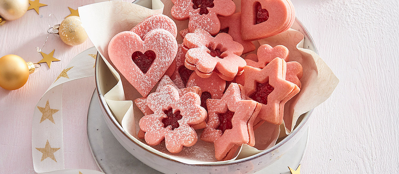 Weihnachtliche Linzer Himbeerplätzchen