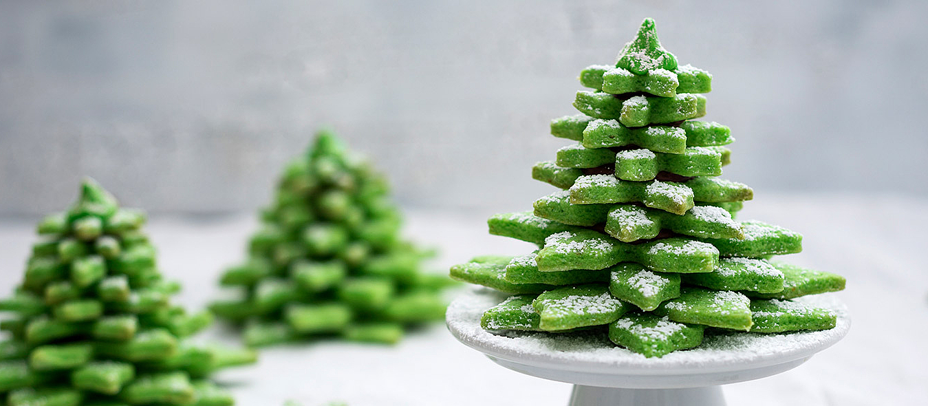 5. Den nicht zu festen Teig portionsweise in einen Spritzbeutel füllen und in Spiralen 20–25 Weihnachtsbäume (6–8 cm) auf die Backbleche spritzen. Die Plätzchen im Ofen ca. 15 Minuten backen, dabei die Position der Bleche einmal tauschen.
